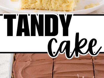 Inspired by the famous Tastykake version, tandy cake is a homemade treat that’s just as nostalgic: a fluffy vanilla sheet cake topped with a creamy peanut butter layer and finished with smooth milk chocolate. Every bite is pure childhood comfort.